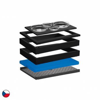 Gekühltes modul mit 4 Schalen ist eine Komplettlösung für kalte modules. Dieses Set besteht aus zwei Basisrahmen (58 x 40,5 x 6,5cm), ergänzt durch einen oberen Holzrahmen für GN1/1 sowie folgendes Zubehör: eine schwarzes Buchenholze wärmeisolierende Unterlage, ein Kühlelement, ein Holzeinsatz mit vier Aussparungen für Schalen, 2 x Glasschale 12cm und 2 x Glasschale 20cm. Die schwarze Holzoptik fügt sich harmonisch in jede Umgebung ein – sei es im Frühstücksbereich eines Hotels, bei einem Firmenmodule oder bei Catering-Veranstaltungen. Dank des einfachen modularen Systems lässt sich das Set flexibel verschieben, kombinieren und an unterschiedliche Raumgegebenheiten anpassen.