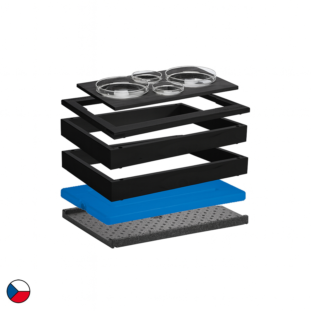 Gekühltes modul 4 Schalen 2 Rahmen schwarzes Buchenholz