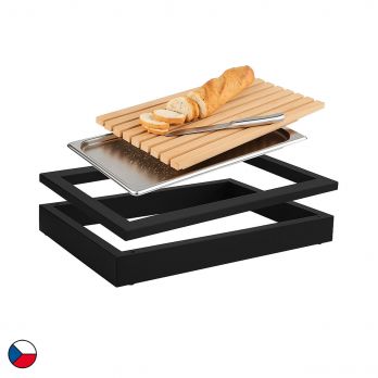 Neutraler modul mit Schneidrost ist eine Komplettlösung für das Frühstücksmodule. Dieses Set besteht aus einem Basisrahmen (58 x 40,5 x 6,5cm), ergänzt durch einen oberen Holzrahmen für GN1/1 sowie folgendes Zubehör: ein Schneidrost und ein GN-Behälter aus Edelstahl GN1/1–20mm. Das schwarze Holzdekor fügt sich harmonisch in jede Umgebung ein – sei es im Frühstücksbereich eines Hotels, bei einem Firmenmodule oder bei Catering-Veranstaltungen. Dank des einfachen modularen Systems lässt sich das Set flexibel verschieben, kombinieren und an unterschiedliche Raumgegebenheiten anpassen.