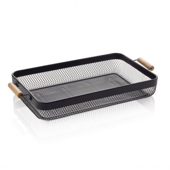 Drahtwanne 51 x 26,5 x 7,5 cm mit Metall-/Holzgriffen