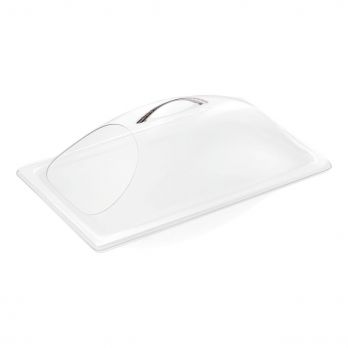 Kuppelförmiger Deckel GN 1/1 mit seitlichem Ausschnitt, Polycarbonat. Eine ausgezeichnete Wahl für die moderne Gastronomie und den anspruchsvollen Hausgebrauch.