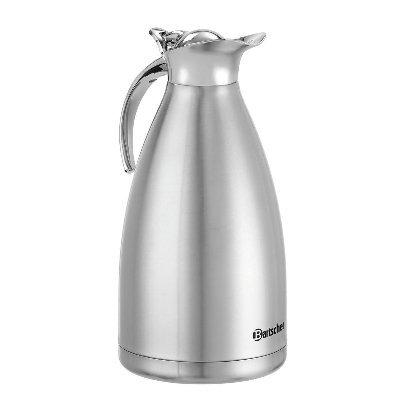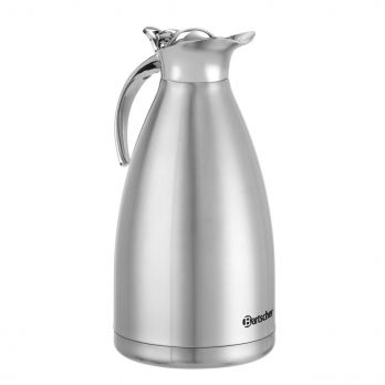 Isolierkanne für Heißgetränke. Durchmesser der Standfläche: 145 mm. Doppelwandig, Temperaturverlust ca. 3,5 °C/Stunde. Silberfarben. Volumen: 2 Liter. Spülmaschinenfest. Deckel mit Ausgießmechanismus, leicht zu befüllen, Klappdeckel. Material: Edelstahl. Abmessungen: B 142 x T 157 x H 295 mm, Gewicht: 0,955 kg.