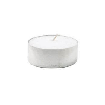 Teekerze mit einem Durchmesser von 5,8 cm und einer Höhe von 2 cm „JUMBO“. Brenndauer 10 Std. In der Packung sind 20 Stück enthalten.