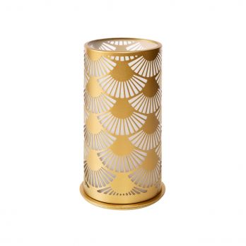 Der Metallkerzenhalter PEACOCK GOLD kann für Teekerzen und LED-Kerzen in der Farbe Gold verwendet werden und erzeugt ein wunderschönes Muster auf dem Tisch. Größe 14 x 7,5 cm.