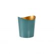 RIPPLE-Kerzenhalter aus Metall in blaugrüner Farbe. Die Innenwand ist goldfarben. Kann sowohl für Tee- als auch für LED-Kerzen verwendet werden. Größe 8 x 7 cm.
