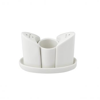 Menage 4-teilig Salz + Pfefferstreuer + Zahnstocher, Porzellan