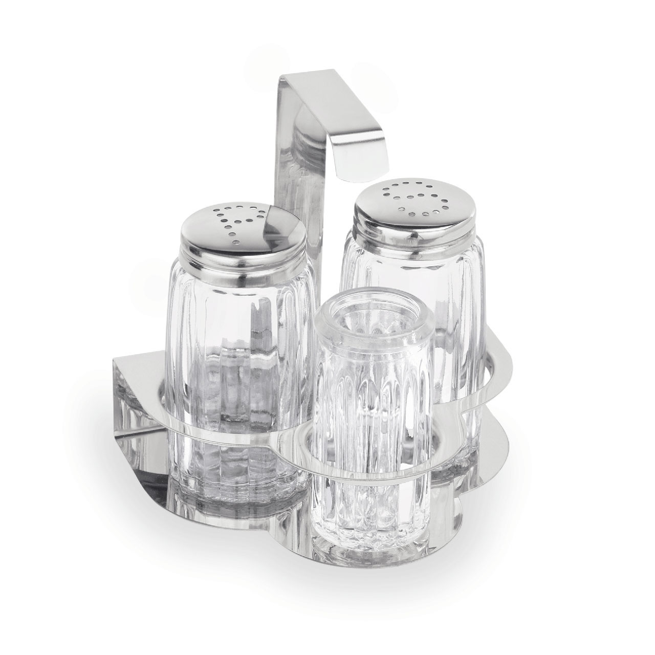 3-teiliges Set mit Salz-, Pfeffer- und Zahnstocherhalter, Höhe 10,5 cm, Edelstahl und Glas. Ideal für den professionellen Einsatz in der Gastronomie. Hochwertige Materialien garantieren Langlebigkeit und Zuverlässigkeit.