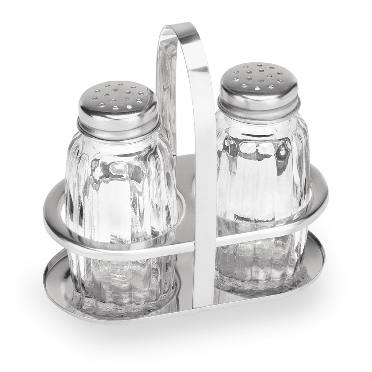 2-teiliger Salz- und Pfefferstreuer 1480, Höhe 10 cm, Edelstahl, Glas. Ideal für den professionellen Einsatz in der Gastronomie. Hochwertige Materialien garantieren Langlebigkeit und Zuverlässigkeit.
