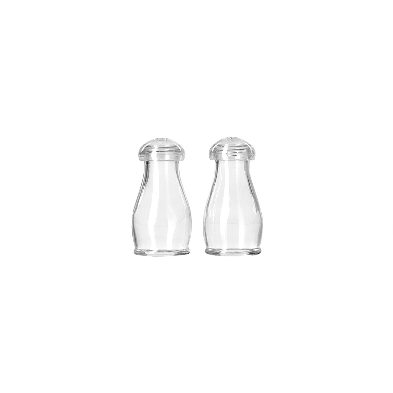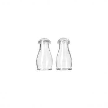 Salz-/Pfefferstreuer aus Glas mit Kunststoffdeckel.
