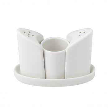 Menage Porzellane: Salz + Pfeffer + Zahnstocher