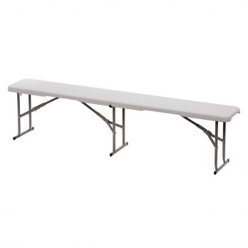 Die Bartscher Partybank eignet sich beispielsweise für Feiern. Die Sitzfläche besteht aus stabilem, weißem Kunststoff. Das klappbare Untergestell ist aus schwarz lackiertem Metall. Die Bank lässt sich leicht zusammenklappen und dank des Tragegriffs bequem transportieren. Sie ist platzsparend zu verstauen. Maße der Bank: B 1820 x T 280 x H 435 mm (zusammengeklappt 945 x 295 x 90 mm). Gewicht: 7,6 kg. Maximale Belastbarkeit: 300 kg.