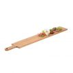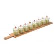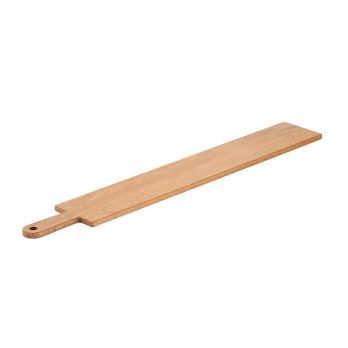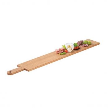 Hochwertiges Servierbrett aus massivem Eichenholz ist ideal zum eleganten Servieren von Vorspeisen, Degustationen, Dips, Fingerfood oder kleinen Desserts. Das Brett verfügt auf einer Seite über 8 praktische Vertiefungen mit einem Durchmesser von 6 cm.Dank des Hängelochs mit einem Durchmesser von 2 cm lässt sich das Brett einfach aufhängen und spart Platz. Die natürliche braune Holzfarbe und die robuste Verarbeitung garantieren eine lange Lebensdauer und vielseitige Nutzung – sowohl zu Hause als auch in der Gastronomie.Die Abmessungen von 100 x 14 cm und eine Höhe von 1,5 cm bieten ausreichend Platz zum Servieren verschiedener Speisen.
