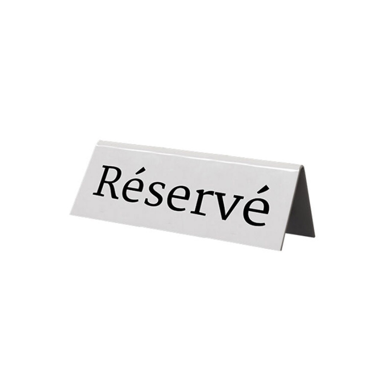 Tischreservierungstische aus weißem Acryl. Die französische Aufschrift „Reserve" ist in schwarzen Buchstaben eingeprägt. Der Tisch ist für jedes Restaurant geeignet. Es ist leicht zu waschen und bei normalem Gebrauch beständig gegen Beschädigungen. Packung mit 5 Stück im Blister.