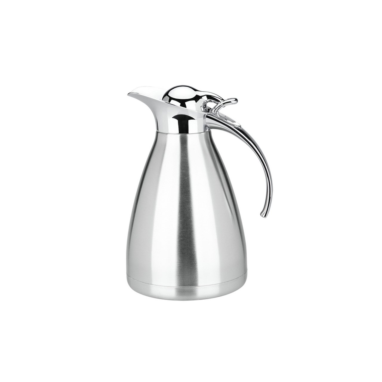 Edelstahl-Thermoskanne mit einem Volumen von 1 l und einer Pumpe zum einfachen Dosieren von Getränken. Geeignet für Bankette und ähnliche Anlässe. Glänzende Oberfläche. Rozmìry 16 x 13,3 x 23,5 cm