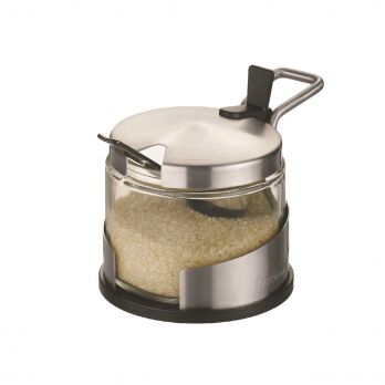 Gefäß für Zucker oder geriebenen Käse, Material Glas, Edelstahl. Hohe Qualität, einfache Wartung