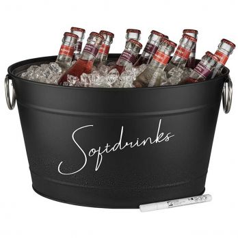 Mit diesem praktischen Getränkekühler aus Metall bleiben Ihre Getränke perfekt gekühlt. Er ist aus robustem, verzinktem Metall gefertigt und verfügt über einen Kunststoffeinsatz für einfache Reinigung und lange Lebensdauer. Mit einem Fassungsvermögen von 11 Litern und den Maßen 40 x 28 x 22 cm bietet er ausreichend Platz für mehrere Flaschen. Ideal für Feiern zu Hause, Partys oder den professionellen Einsatz in der Gastronomie.