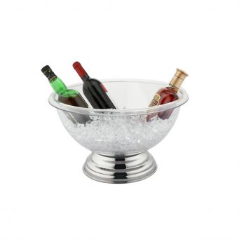 Ideal zum Servieren und Kühlen von Champagner, Punsch oder ähnlichen Getränken. Auch zum Servieren von Salaten und Meeresfrüchten. Die Schüssel besteht aus Polycarbonat, der Boden ist aus Edelstahl.