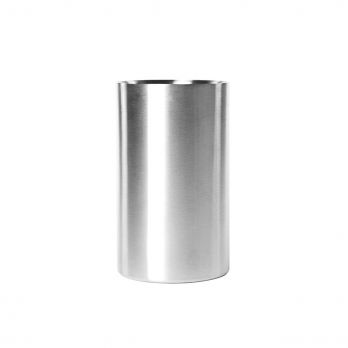 Edelstahlkühler für Wein oder Sekt mit einem Durchmesser von 12 cm, Höhe 20 cm.