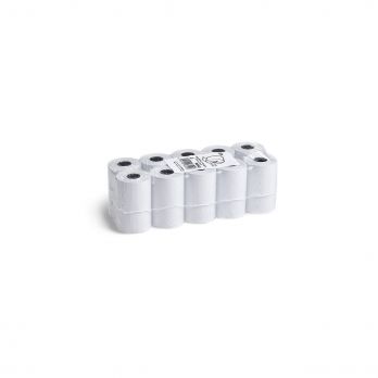 Bonrolle für Thermodrucker (PAP). In jeder Verpackung befinden sich 10 Rollen. Die Rollen sind 57 mm hoch, weisen einen Durchmesser von 40 mm auf, dies bei einer Lauflänge von 18 m.