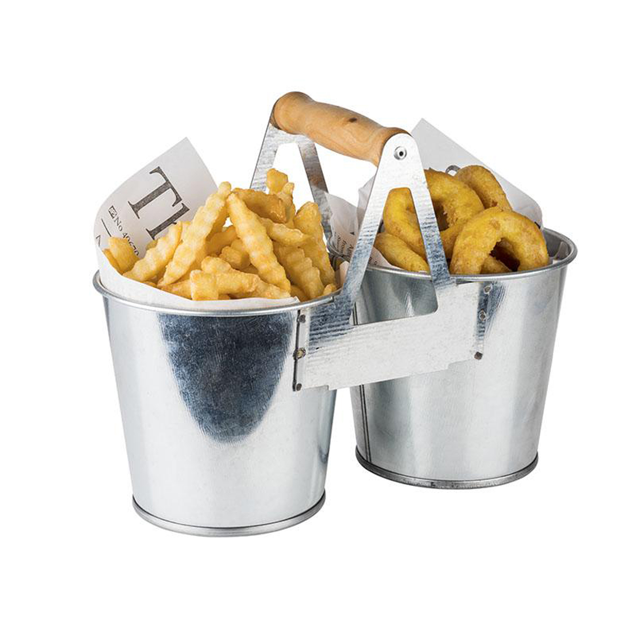 Ständer aus verzinktem Metall mit Holzgriff. Abmessungen 12 x 24,5 cm und Höhe 18,5 cm.