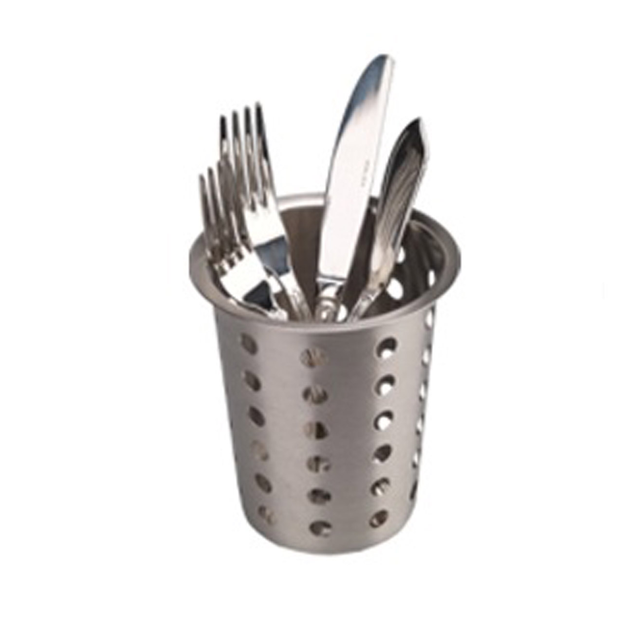 Besteckkorb, Durchmesser 11,5 cm, Höhe 12 cm, perforiert, Edelstahl. Ideal für den professionellen Einsatz in der Gastronomie. Hochwertiges Material garantiert Langlebigkeit und Zuverlässigkeit.
