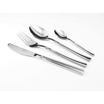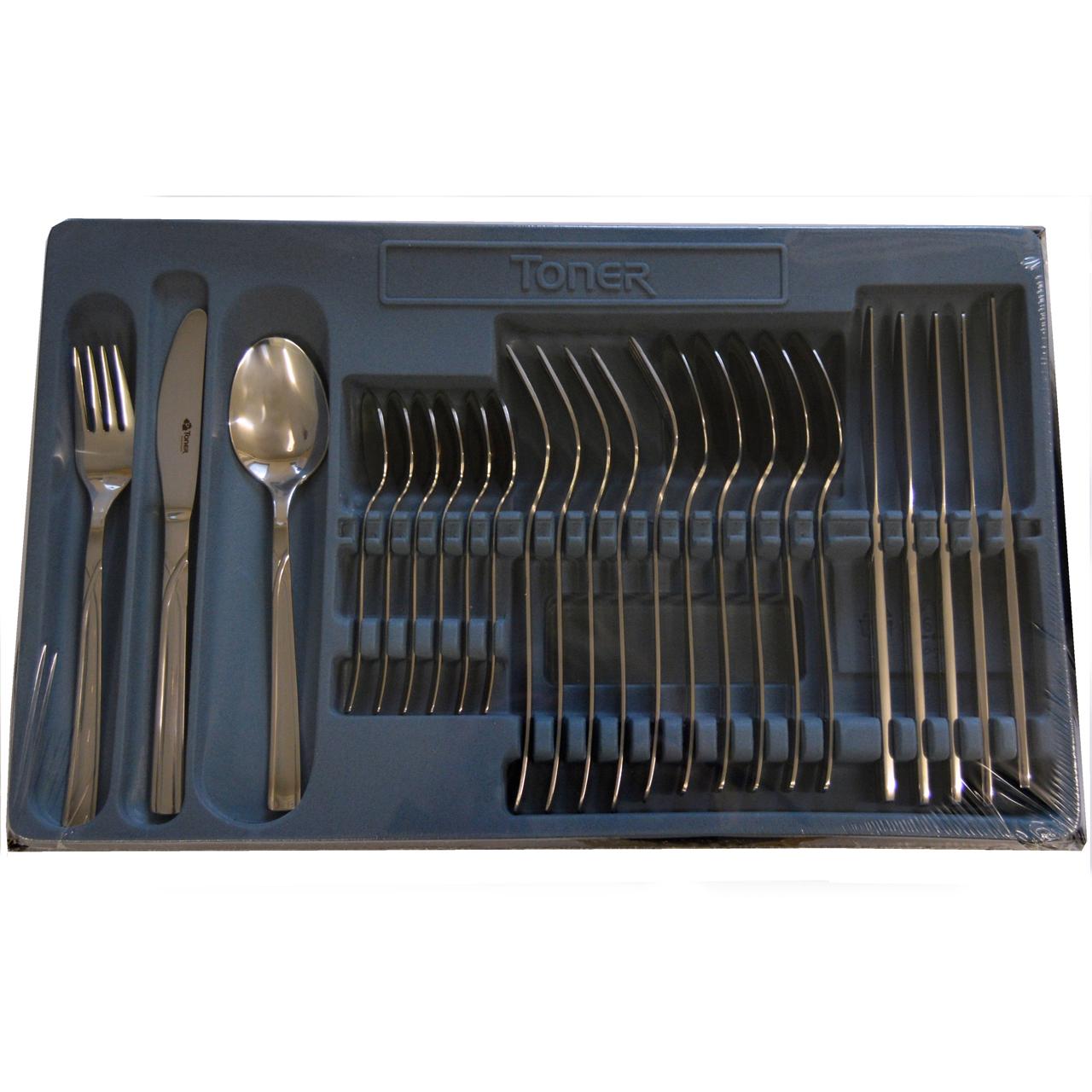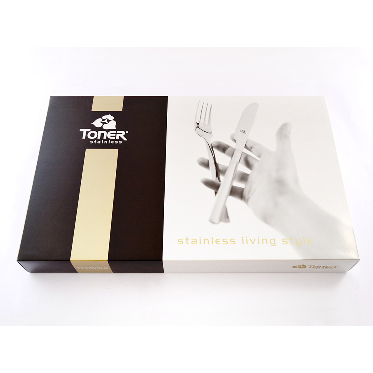 Einfaches Besteckset für 6 Personen in einer Geschenkbox. Edelstahl 18/10, Materialstärke: Löffel 2,0 mm, Gabel 2,0 mm, Messer 5,0 m m, Kaffeelöffel 1,5 mm