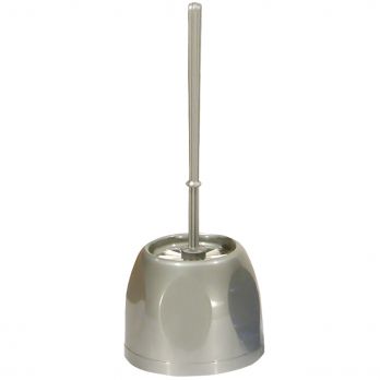Edelstahl-Toilettengarnitur DELUX, bestehend aus Toilettenbürste mit Deckel und Behälter. Design aus rostfreiem Metall.