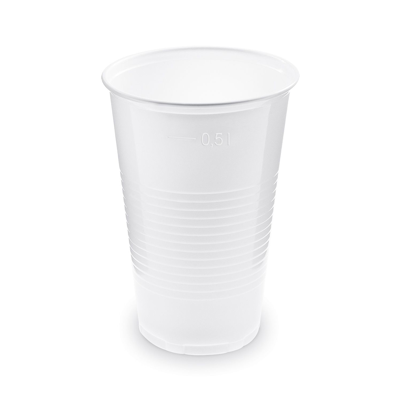Becher (PP) weiß 0,5 l, Durchmesser 95 mm.