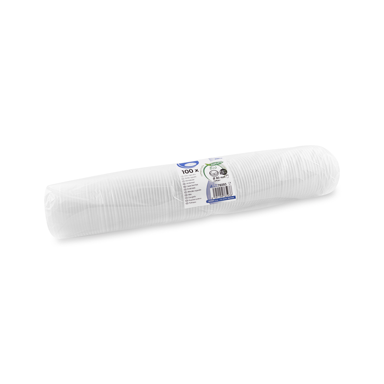 Domdeckel BIO weiß für Becher mit Durchmesser 80 mm (100 Stck)