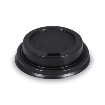 Konvexer Deckel schwarz für Pappbecher Durchmesser 62 mm. Die Tassen sind in der Farbe Weiß Nr. 100024668, in der Farbe Braun Nr. 100030846 oder mit Aufdruck Nr. 100023723 erhältlich.
