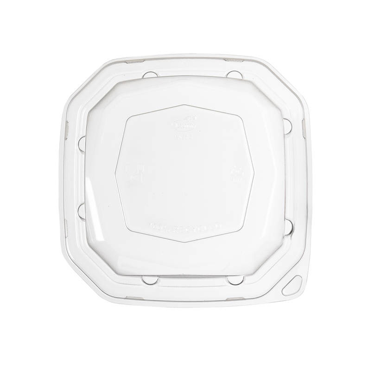 Achteckiger Kunststoffdeckel für Schüssel Nr. 100030446. Recyceltes PET-Material, max. Temperatur + 70 °C, beschlägt nicht (Antibeschlag-Design). Durchmesser 16 cm.