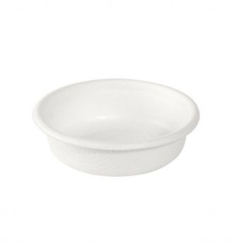 Tasse/Schüssel für Dressing aus Bagasse mit einem Volumen von 30 ml. Durchmesser 6,3 cm, Höhe 1,8 cm. Den Deckel finden Sie unter der Nummer 100030486. Er ist mikrowellengeeignet, bis +100°C.