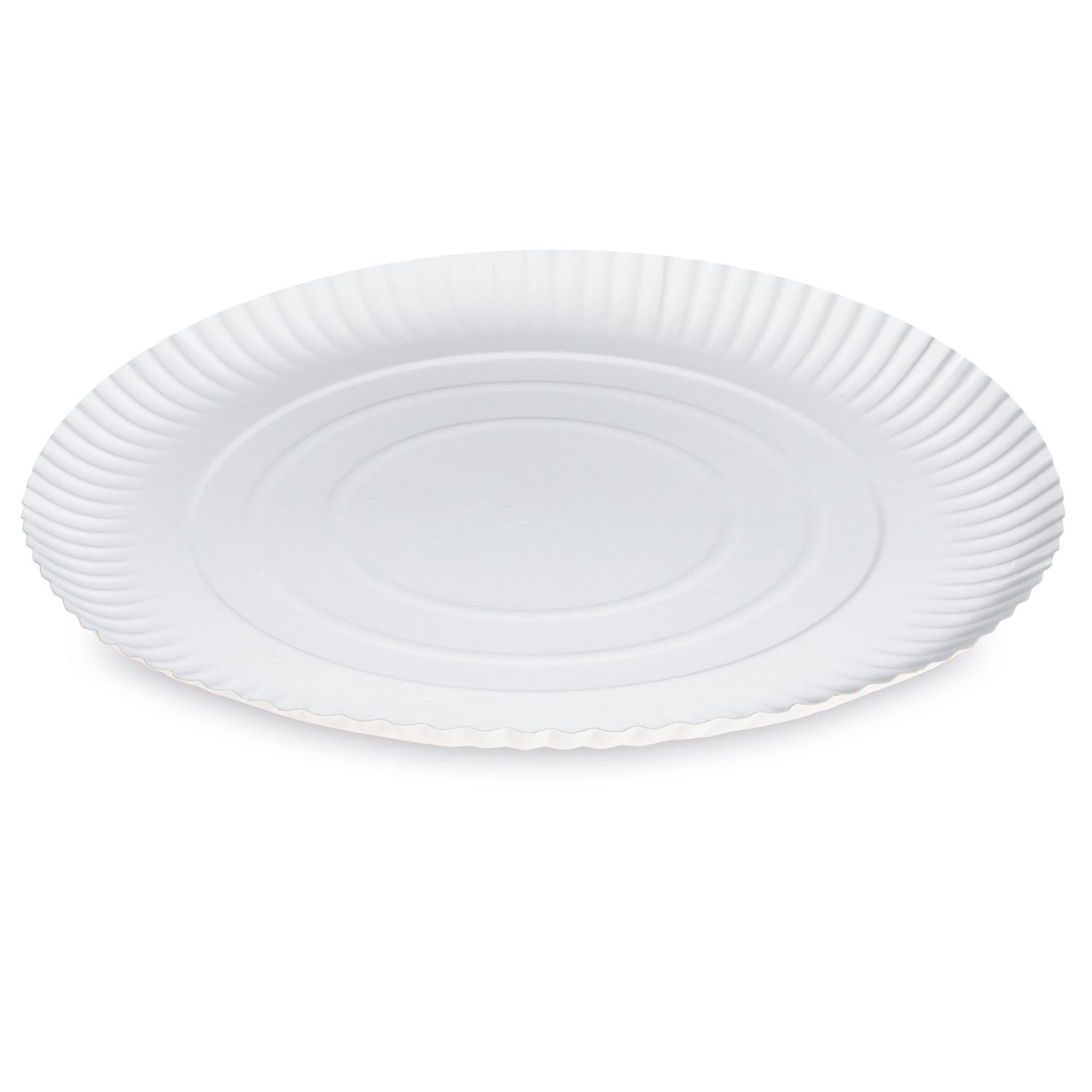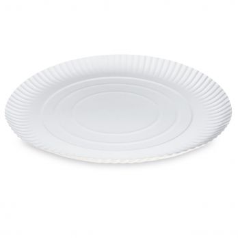 Tiefweißer Pappteller mit einem Durchmesser von 34 cm.