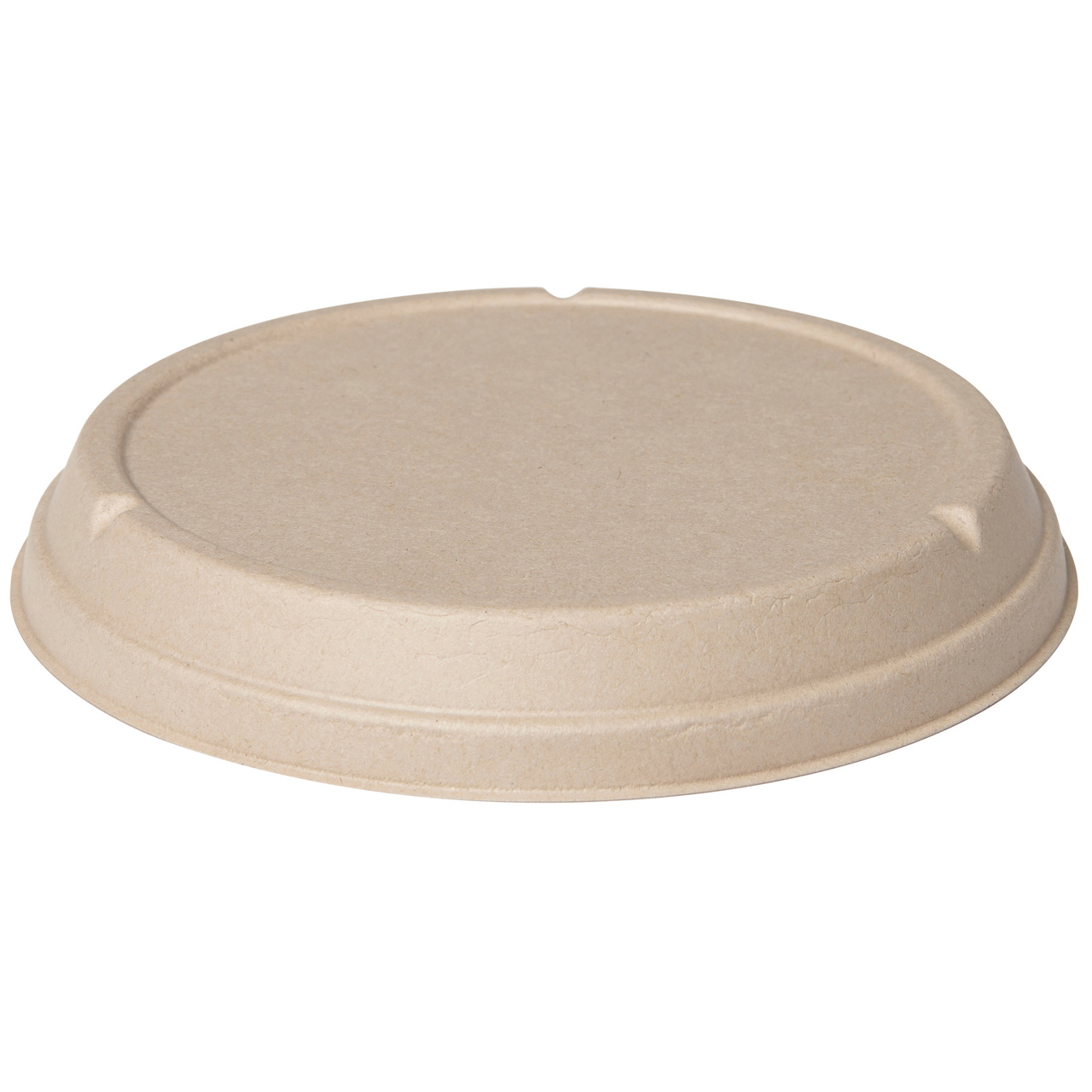 Bagasse-Deckel für 800, 900, 1000 und 1200 ml Schüsseln, zu finden unter den Nummern 100020891, 100023507, 100020890 und 100026323. Höhe 2,7 cm. Einsatz bei Temperaturen bis 100 Grad C.