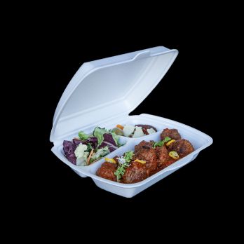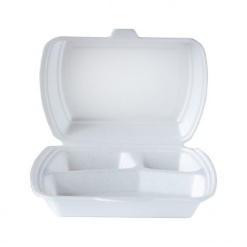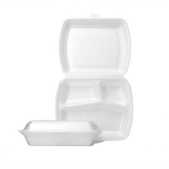 Menübox 3-teilig. XPS-Material. Größe 25 x 20,5 x 7,5 cm. Die Packung enthält 125 Stück.