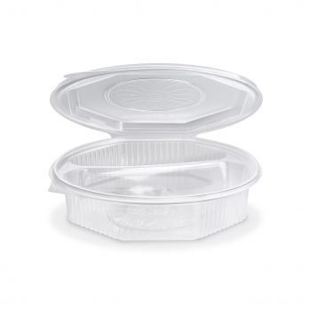 Menüschale (PP) achteckig transparent mit Deckel 2-teilig. Spezifikationen: 21,5 x 22 x 5,7 cm. Volumen 600 + 405 ml.