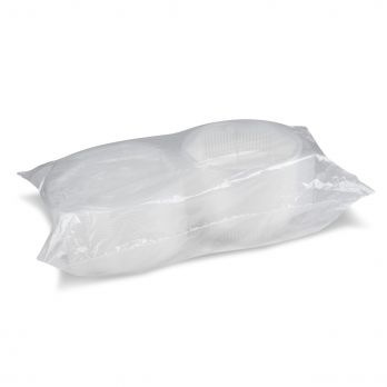 Menüschale (PP) achteckig transparent mit ungeteiltem Deckel. Spezifikationen: 21,5 x 22 x 5,7 cm. Volumen 1200 ml.