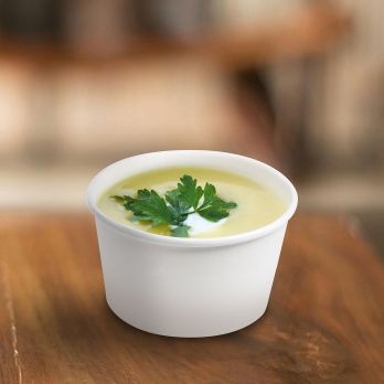 Papierschale rund 350 ml (PAP/PE). Durchmesser 11,5 cm, Höhe 6,3 cm. Eine passende Deckel finden Sie unter der Nummer 100026343.