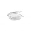 Rechteckige transparente Schüssel mit Deckel 125 ml (PET). Spezifikationen: 11,6 x 11,2 x 3,3 cm.