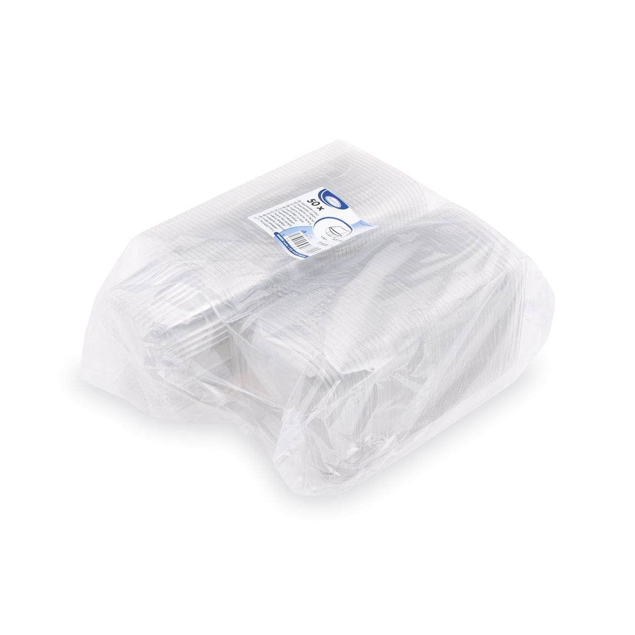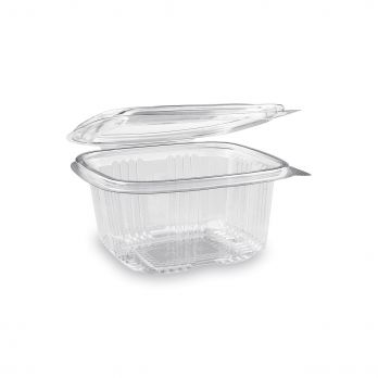 Rechteckige transparente Schüssel mit Deckel 500 ml (PET). Spezifikationen: 12,7 x 13,3 x 6,5 cm.