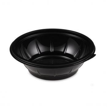 Salatschüssel schwarz 500 ml (PET). Durchmesser 16,5 cm, Höhe 5 cm. Den Deckel finden Sie unter der Nummer 100023203.