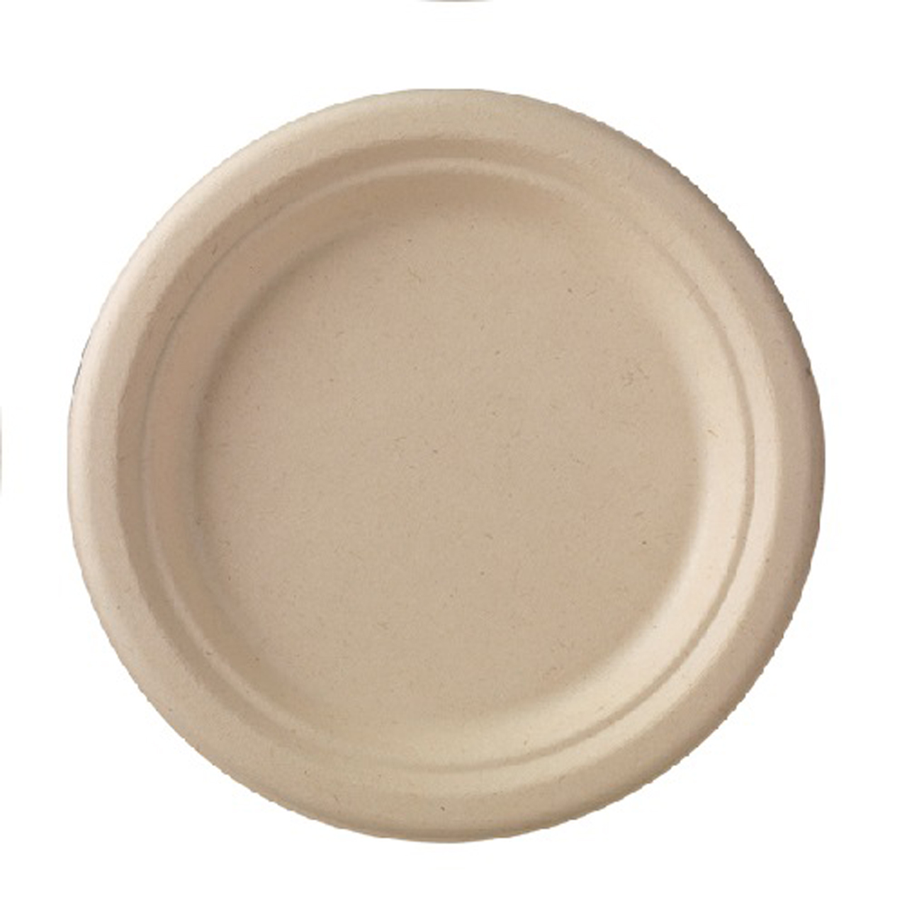 Flacher Teller aus Zuckerrohr, Durchmesser 18 cm, Höhe 1,5 cm. Die ungebleichten Teller der Fibre-Serie werden aus überschüssigen Zuckerrohrfasern hergestellt. Einsatz bei Temperaturen von -20°C bis +120°C.