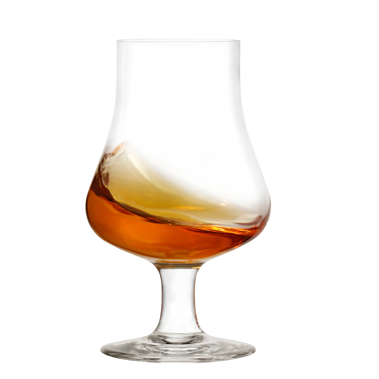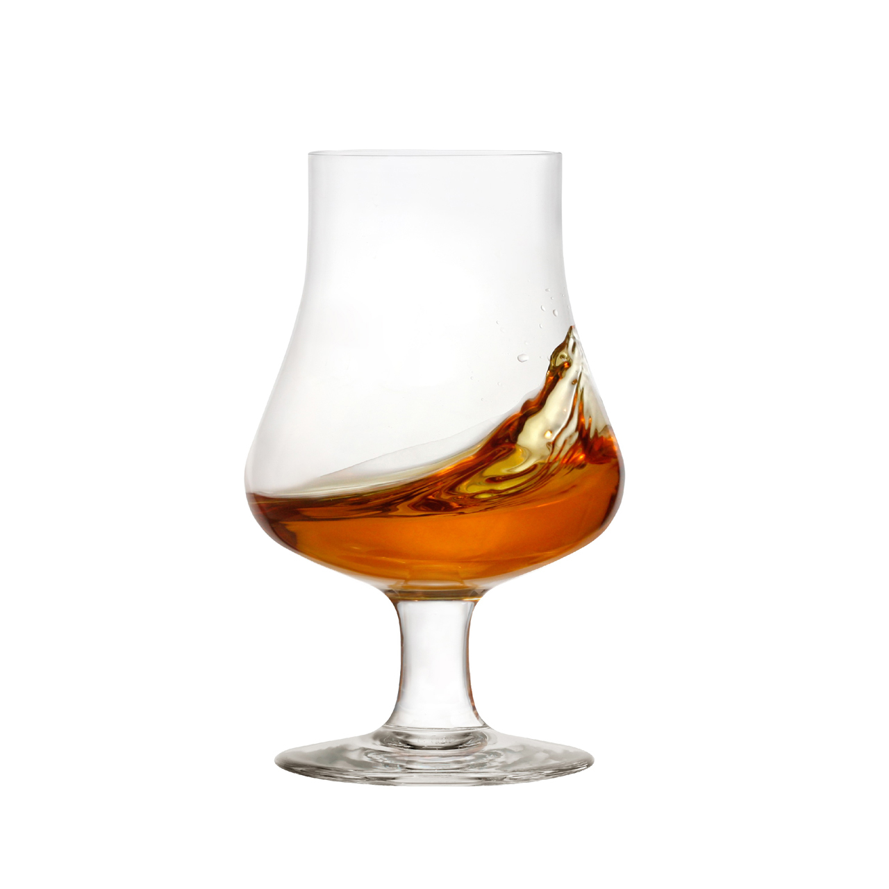 Ein Glas (Glas) auf einem Bein, geeignet für Whisky und Spirituosen.