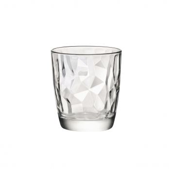 Elegantes Glas aus der Diamond-Kollektion von Bormioli mit einem unverwechselbaren, brillanten (diamantartigen) Look dank der Reliefmodellierung. Das Design ähnelt einem geschliffenen Edelstein, reflektiert das Licht und verleiht Getränken eine beeindruckende Optik.