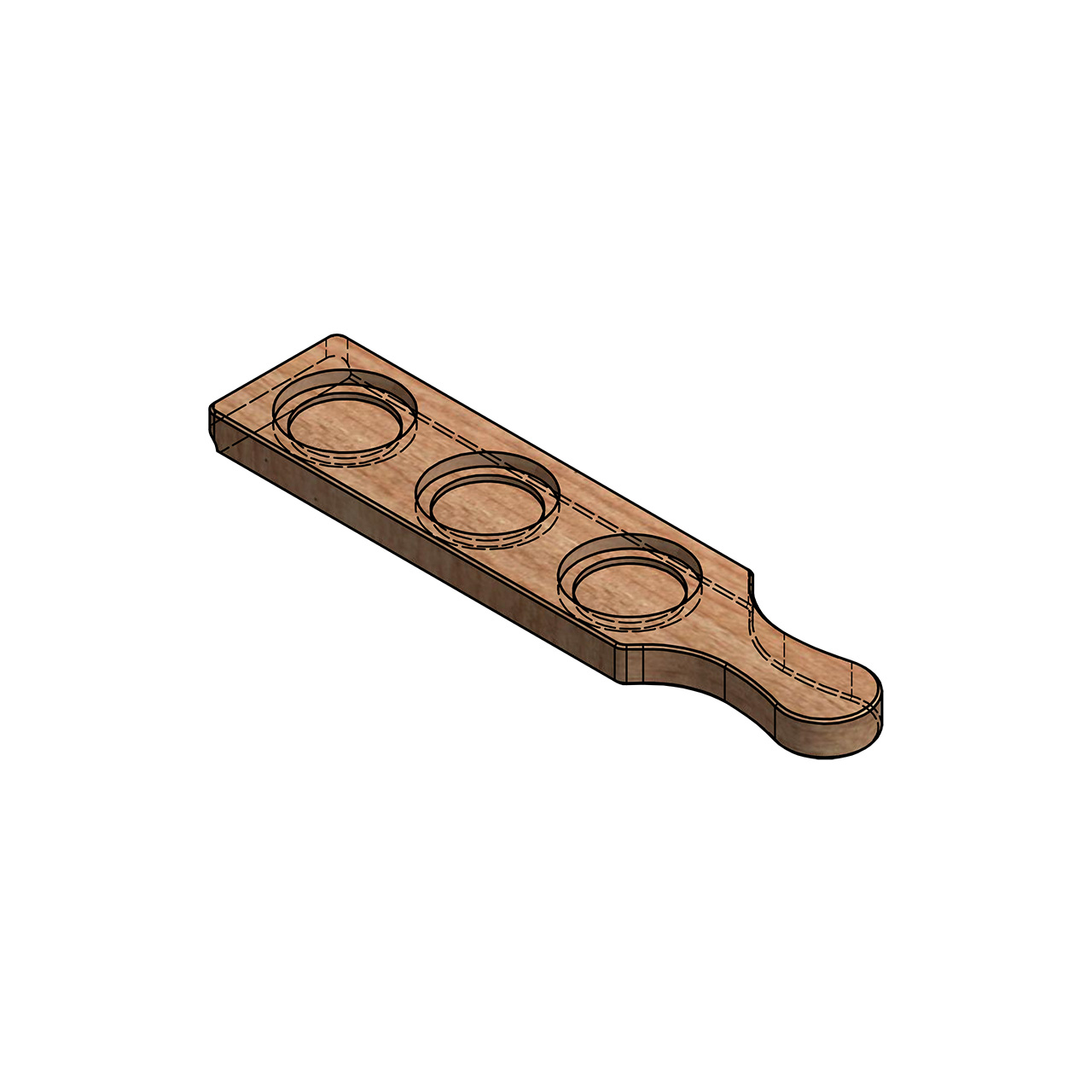 Probierbrett aus Buchenholz für drei Gläser. Sie können ein Sensorik 0,1-Glas oder einen Gambrinus 0,125-l-Becher verwenden
