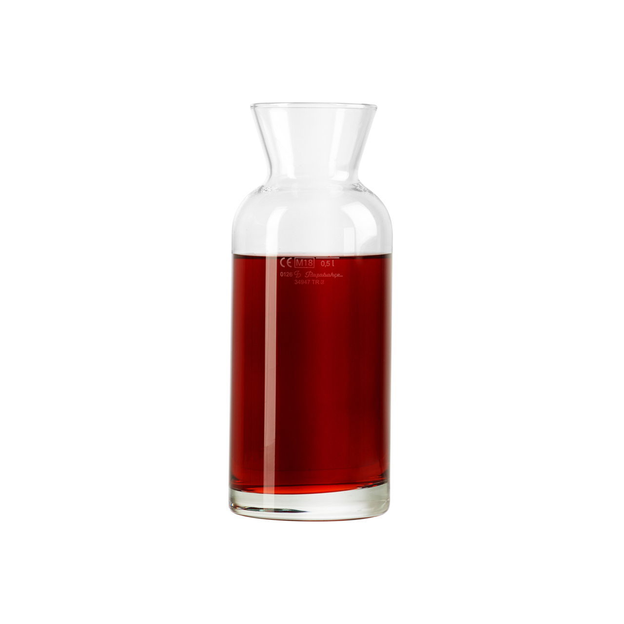 Glaskaraffe für Getränke mit einer Markierung von 0,5 l.