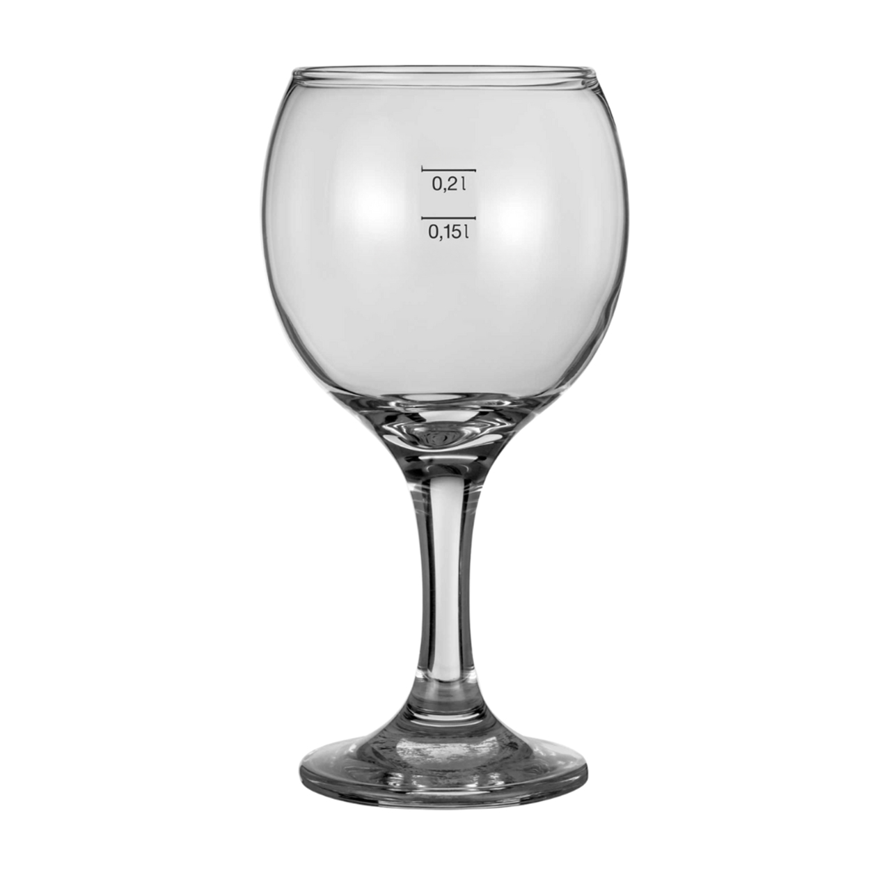 Weißweinglas mit versiegeltem Rand und Eichstrich 0,2 l + 0,15 l.