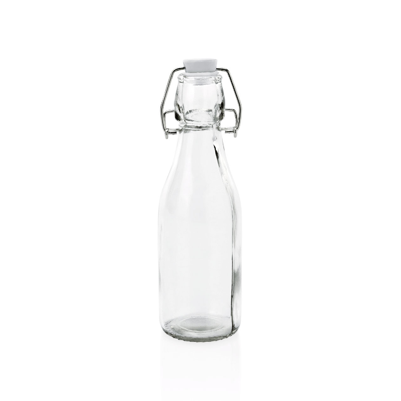 Flaschenset mit Verschluss, 0,25 l, Durchmesser 5,5 cm, Höhe 19,5 cm, 6er-Set, Glas, Edelstahl. Ideal für den professionellen Einsatz in der Gastronomie. Hochwertiges Material garantiert Langlebigkeit und Zuverlässigkeit.