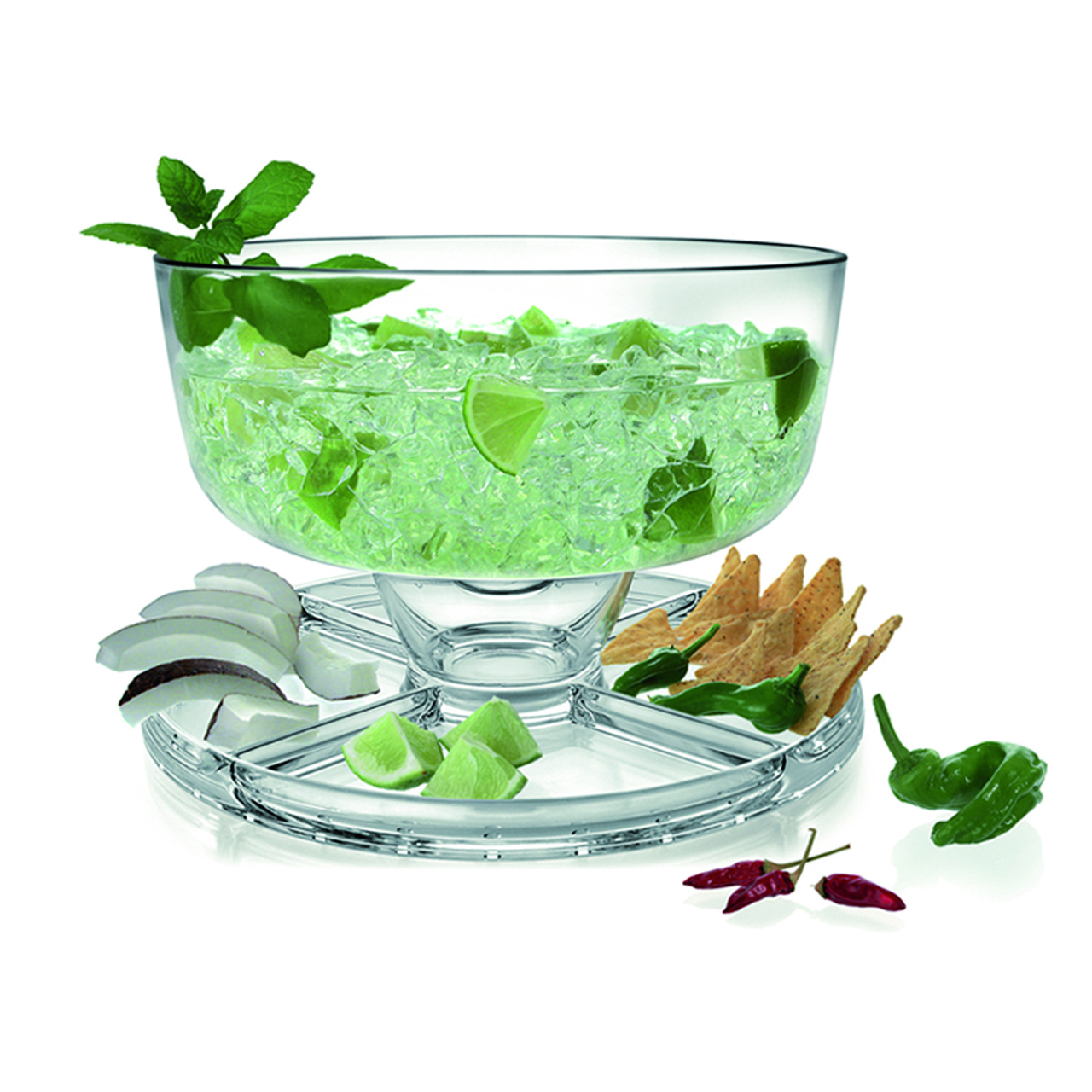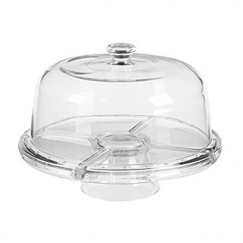 Glasteller/Tablett geteilt in 4 Teile und eine Schüssel. Beidseitig verwendbar. Deckelhöhe 12 cm, Innendurchmesser 26 cm.