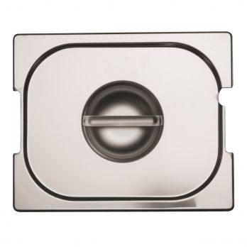 Deckel aus Edelstahl mit Aussparungen für Griffe und Schöpflöffel für GN 1/2.